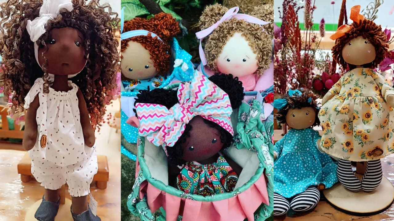 Sibele compartilha em suas redes sociais o processo de criação de bonecas de pano personalizadas. Cada uma delas nasce a partir das características físicas e afetivas das pessoas homenageadas, seja com roupas parecidas, cabelos similares ou acessórios que tenham significado especial.