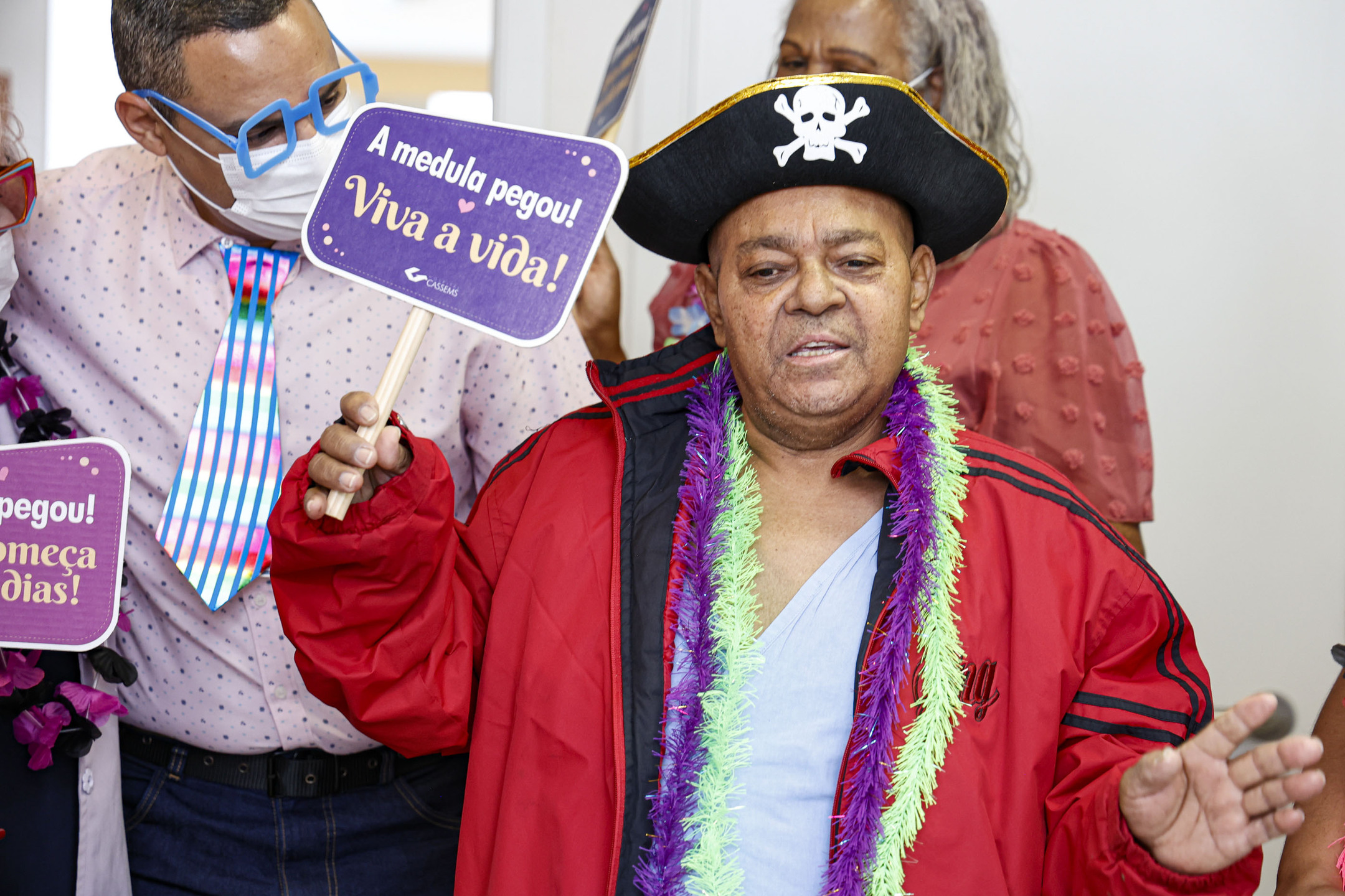 “Eu sentia muitas e muitas dores nas costas, estava tratando e pediram para fazer um exame. Assim, recebi o diagnóstico de câncer. Passei por quimioterapia e agora pelo transplante. Graças a Deus, deu tudo certo”, conta feliz ao receber a notícia depois de ser surpreendido pela visita da filha e da esposa. José Carlos conta ainda que a ansiedade agora é para rever os netos.