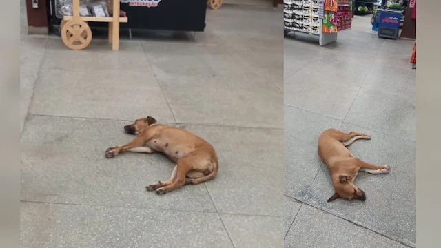 O cãozinho, aparentemente acostumado com o ambiente, estava deitado tranquilamente entre os corredores, curtindo o frescor do ar-condicionado como um verdadeiro cliente VIP. Segundo testemunhas, ele nem se incomodou com o movimento do mercado, parecia mesmo estar "em casa".