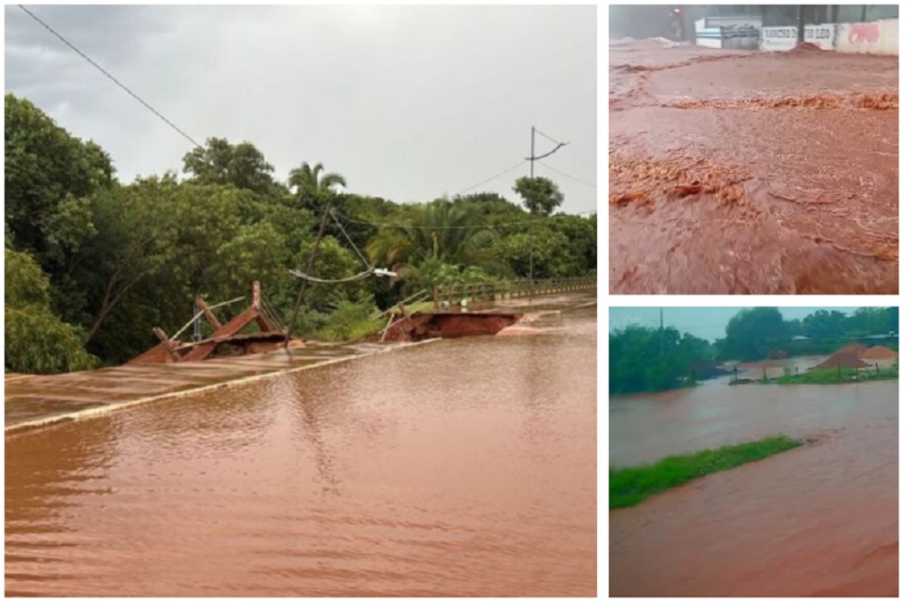 Conforme vídeos encaminhados por leitores à redação do TopMídiaNews, é possível constatar que uma cachoeira se formou no local onde ocorreu o desabamento.