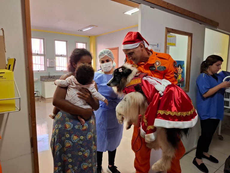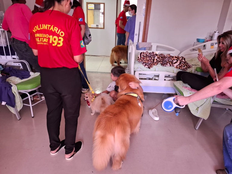 Vestidos com trajes de Natal, os 13 cães participaram ao lado de 19 voluntários e bombeiros, percorrendo diferentes setores do hospital e distribuindo carinho por onde passavam. A reação de quem estava internado revelava a potência dessa iniciativa que, ano após ano, transforma o ambiente hospitalar em um espaço de acolhimento e esperança.