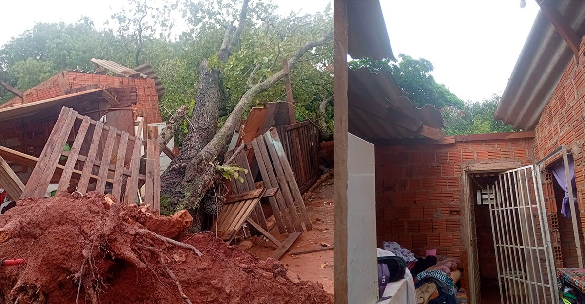 Um temporal provocou a queda de uma árvore de grande porte sobre uma residência localizada na Rua Paiaguás, no Jardim Colibri 2, em Campo Grande. A moradora, Ramona Ortega da Silva, perdeu praticamente todos os bens e teve a casa completamente destruída. Além dela, duas crianças e outros familiares estavam dentro do imóvel no momento do acidente.