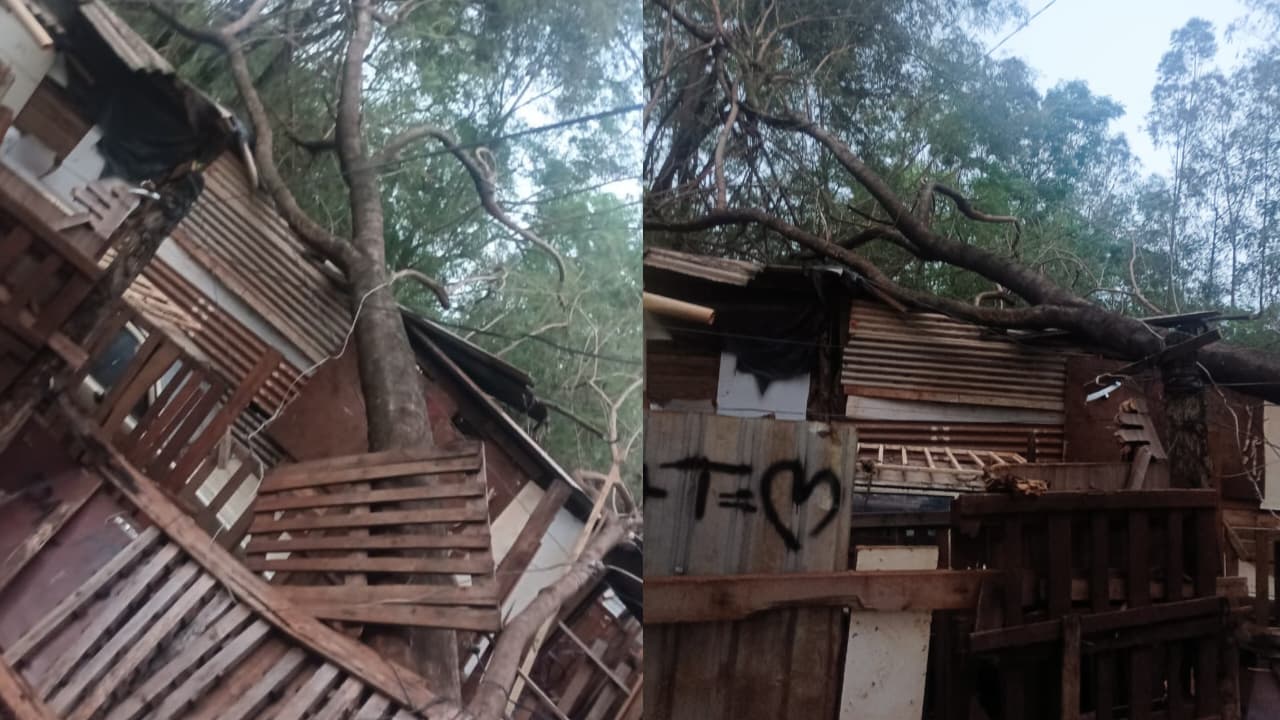 Moradores relataram que a árvore, situada à beira do córrego que passa ao lado da comunidade, cedeu e atingiu a estrutura de uma das casas improvisadas. Apesar do susto, até o momento não se têm notícias de feridos.