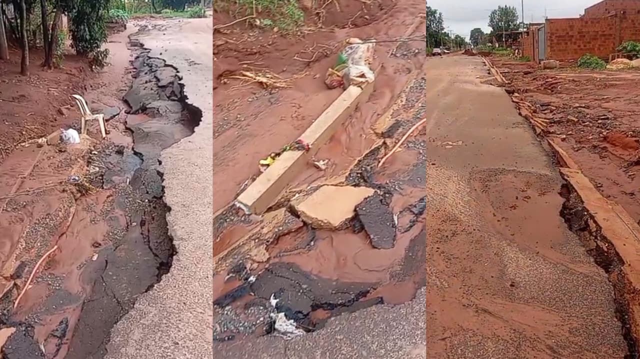 Bastaram as chuvas dos últimos dias para que o tão esperado asfalto da Rua Urupês, no bairro Jardim Noroeste, literalmente fosse levado pela enxurrada.