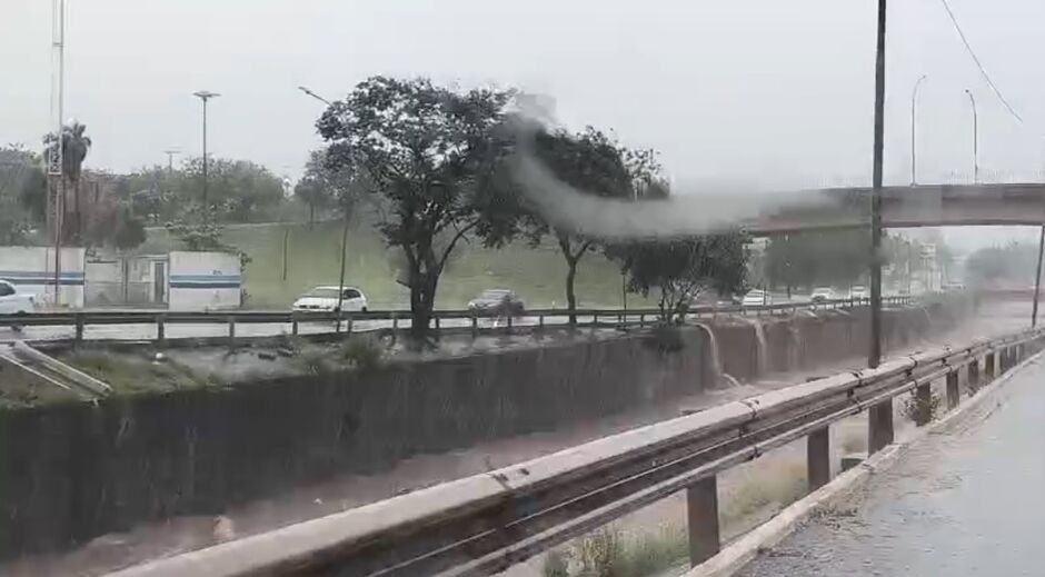 O temporal que atingiu Campo Grande na tarde desta quarta-feira (5) deixou o córrego da Avenida Ernesto Geisel próximo de transbordar, provocando alerta entre moradores e motoristas que transitavam pela região.