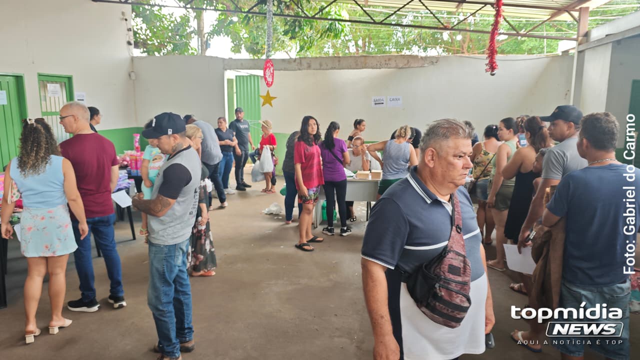 De acordo com a organização, já foram arrecadados R$ 284,00 ao longo do dia. O local segue movimentado, embora o fluxo tenha sido ainda maior nas primeiras horas do evento, com pessoas comprando e saindo ao longo do período.