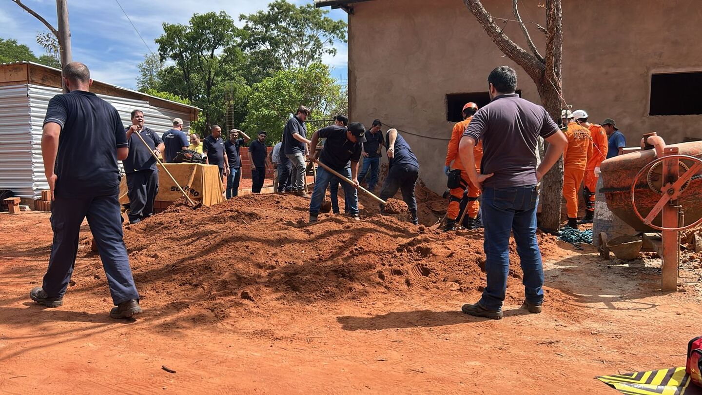 Equipes do Corpo de Bombeiros atuam, na tarde desta terça-feira (11), no resgate de uma vítima de soterramento na Estrada da Guavira, região rural de Campo Grande.