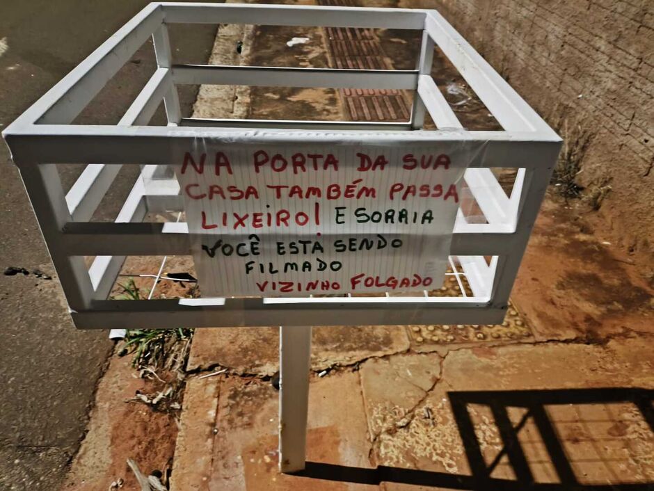 Ainda indignada, ela escreveu um recado e fixou na própria lixeira, avisando que o local é filmado e pedindo que o morador deixe o lixo na porta da própria casa, onde também passa o caminhão. O aviso repercutiu entre os vizinhos e, segundo ela, desde então o homem parou de usar a lixeira alheia.