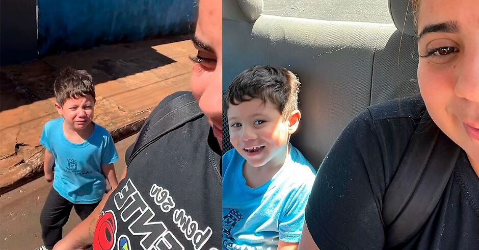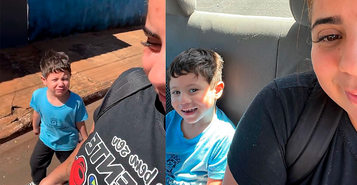 Segundo Letícia, Ravi estuda na mesma Emei em que a mãe trabalha como assistente de Educação Infantil. A volta para casa é rapidinha, apenas algumas quadras, mas isso não impede o pequeno de dramatizar.