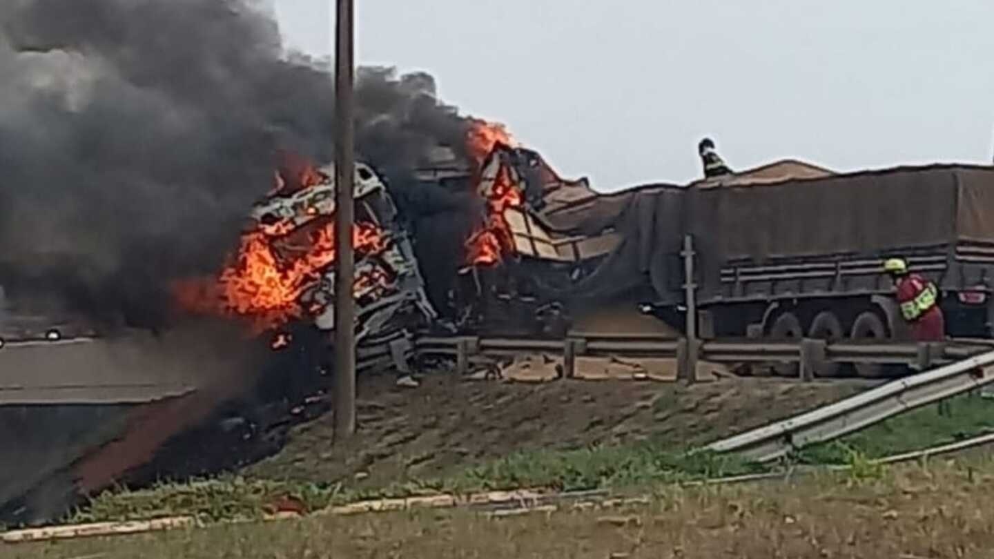 Equipes da Polícia Rodoviária Federal também estão no local. A via está interditada dos dois lados.