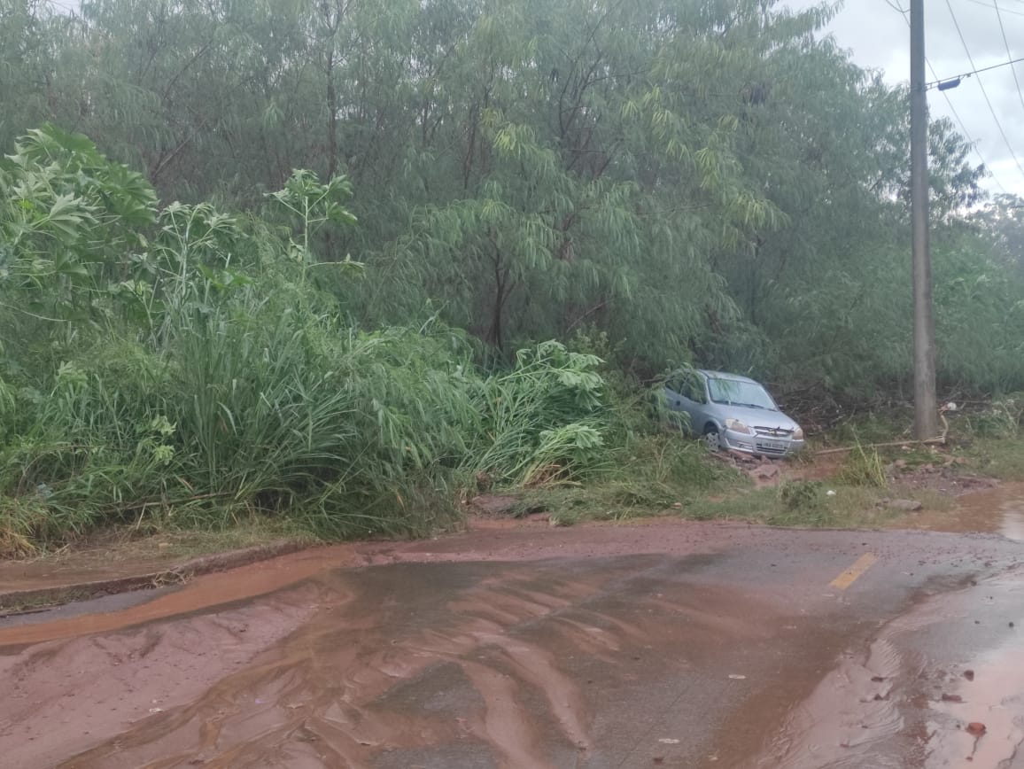 Durante o temporal que atingiu com mais força a região norte de Campo Grande, na tarde desta terça-feira (9), um veículo Chevrolet Celta quase foi arrastado para um córrego na Mata do Segredo.
