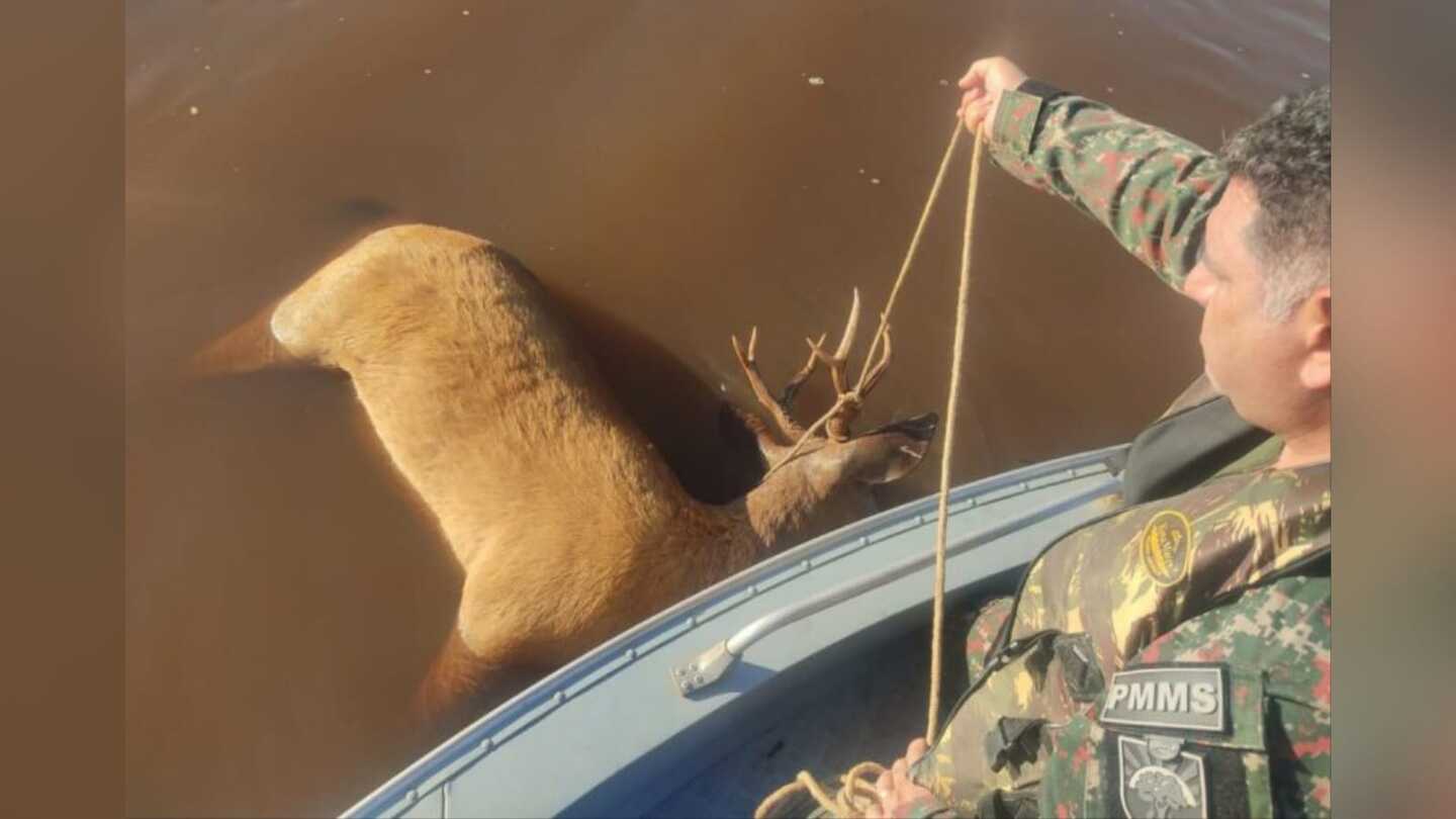 Durante fiscalizações na manhã desta terça-feira (4), a PMA (Polícia Militar Ambiental) encontrou um cervo-do-pantanal adulto morto, boiando, no rio Paraná.