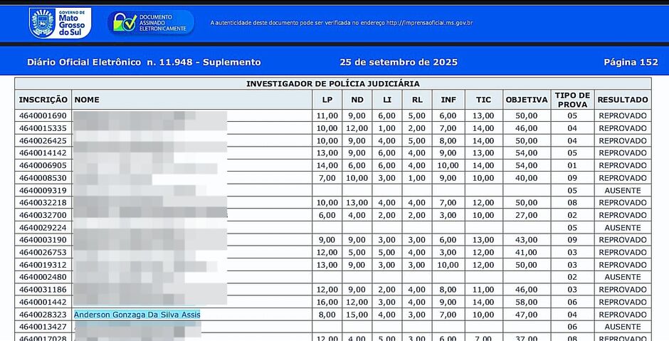 A participação de Gonzaga no concurso repercutiu justamente pela experiência acumulada em funções ligadas à segurança pública. No entanto, o resultado mostra que a prática do dia a dia não foi suficiente para garantir bom desempenho na prova teórica, que exigia domínio de conteúdos específicos de direito, legislação institucional e informática, entre outras disciplinas.