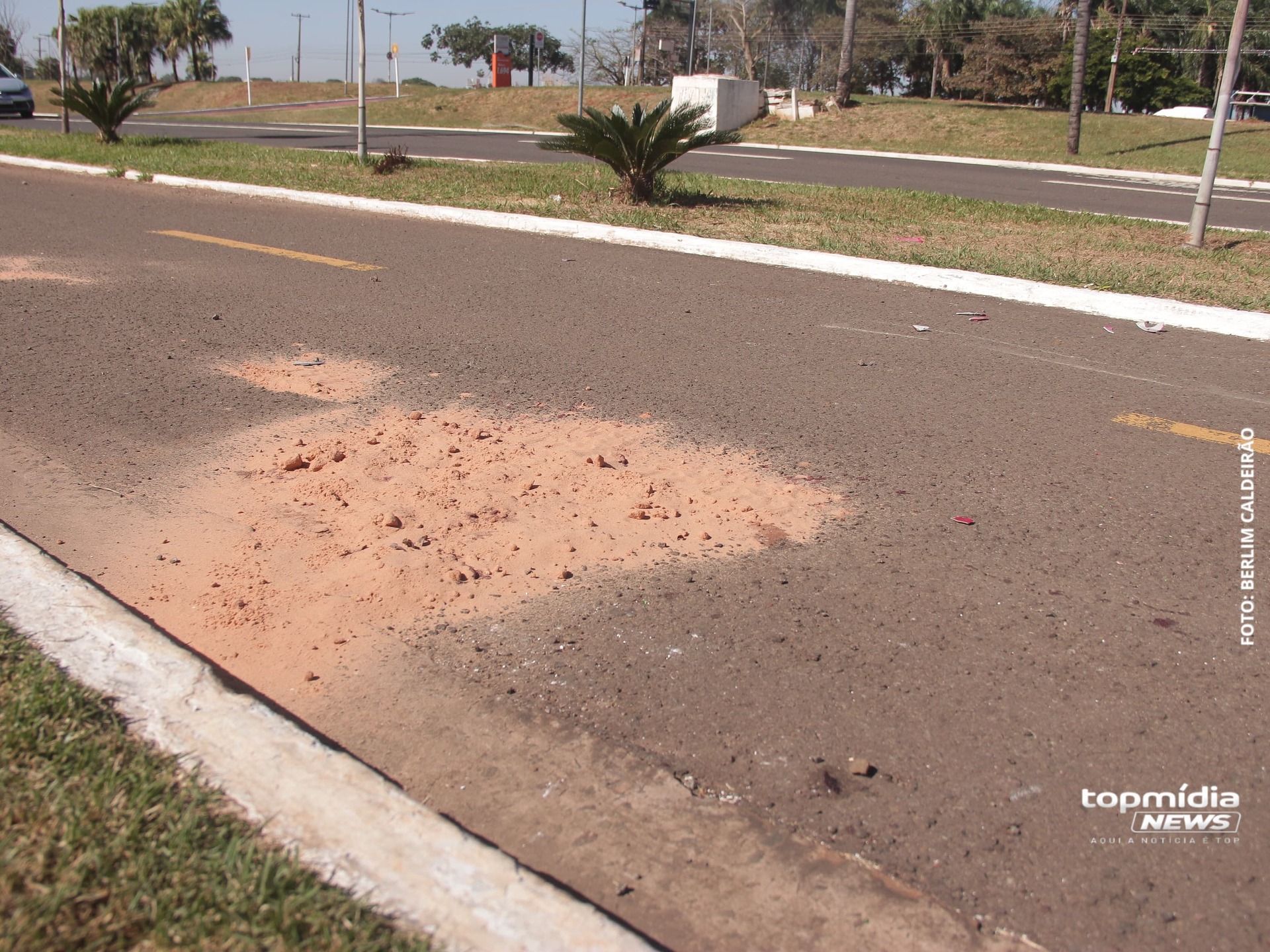 Câmeras de segurança registraram o momento em que a moto surge pela contramão e invade a ciclovia, atingindo o idoso no exato instante em que ele atravessava a faixa. O acidente ocorreu em frente a um hotel.