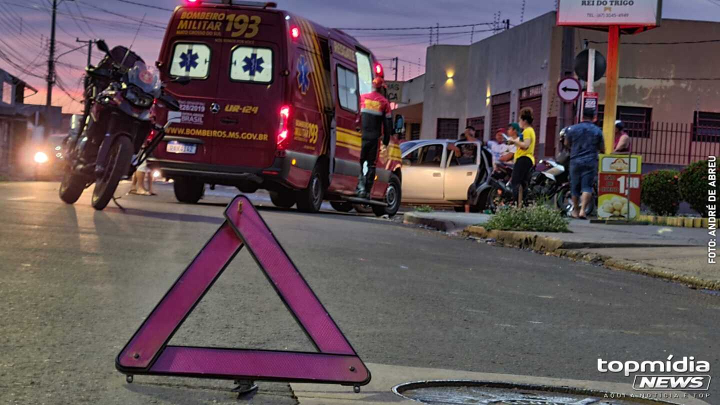 Motorista de um carro de passeio furou a preferencial na Rua Tenente Antonio João Ribeiro e atingiu uma motocicleta que seguia pela Av. Manoel Joaquim de Moraes, no Jardim Leblon, em Campo Grande. O acidente ocorreu no início da noite deste sábado (3).