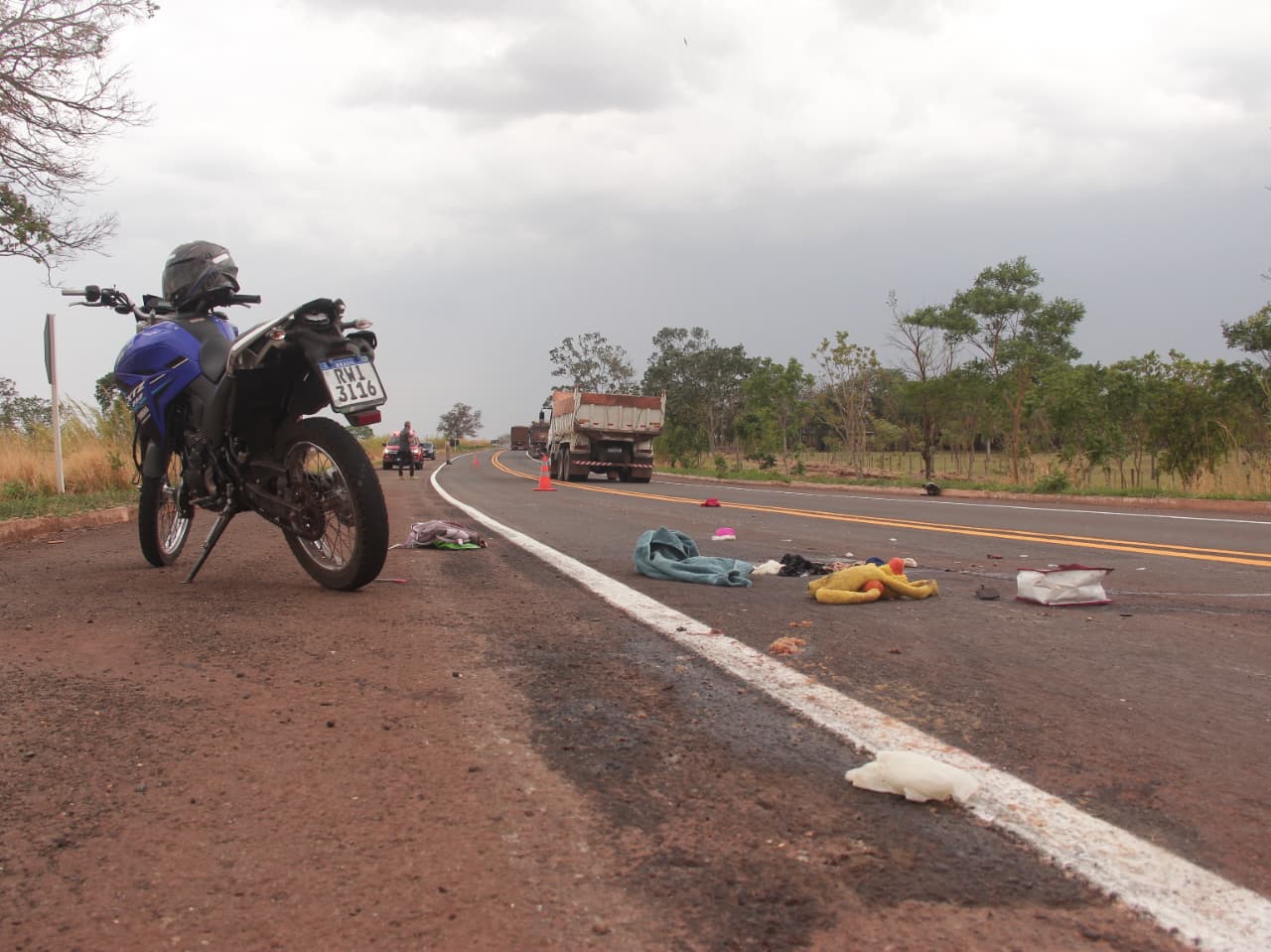Conforme informações apuradas pela reportagem no local, a carreta seguia no sentido Rochedo/Rochedinho, quando uma motocicleta XTZ Yamaha, que seguia na mesma direção, parou de forma brusca na pista, com intuito de entrar na região conhecida como Céuzinho.