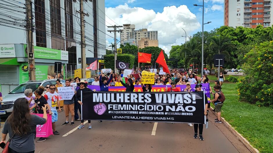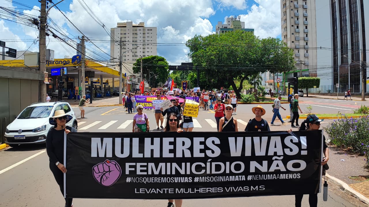 Mulheres de todas as idades se reuniram na manhã deste domingo (7) na região central de Campo Grande para participar da mobilização nacional “Mulheres Vivas”, que tomou cidades de todo o país em luta pelas vítimas de feminicídio.