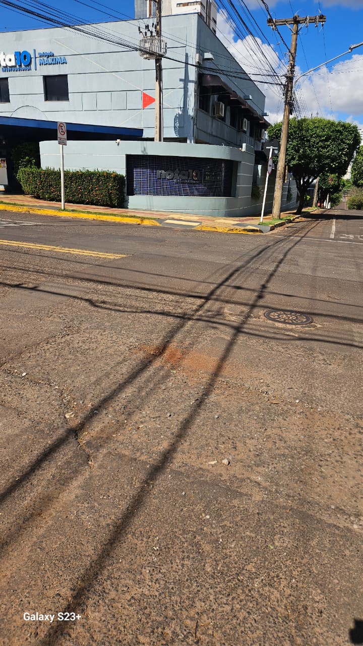 Apesar de um recapeamento recente em partes da região, a Rua Goiás não recebeu o mesmo tratamento. O asfalto da via é irregular, cheio de pedras grossas e remendos mal feitos. A situação se agrava ainda mais por estar em frente a locais movimentados, como um hospital e escolas importantes da região.