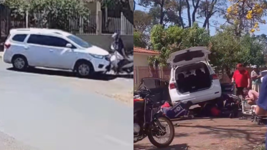 Vídeos gravados por moradores mostram a cena. O carro ficou suspenso sobre a moto, com a vítima embaixo do veículo. Motossocorristas do Corpo de Bombeiros e do Samu trabalharam para retirar a professora, que foi encaminhada em estado gravíssimo à Santa Casa.