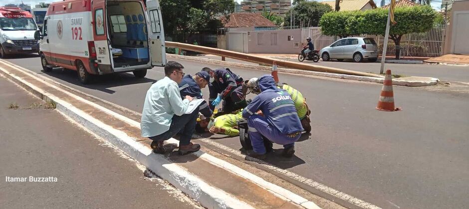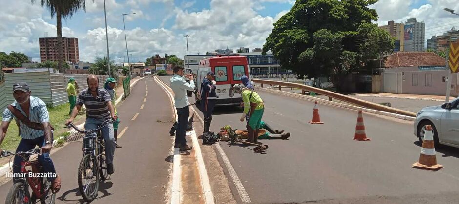 Trabalhador da Solurb foi atropelado, na manhã desta quarta-feira (22), por um motociclista na Avenida Fábio Zahran, em Campo Grande, que fugiu e não prestou socorro.