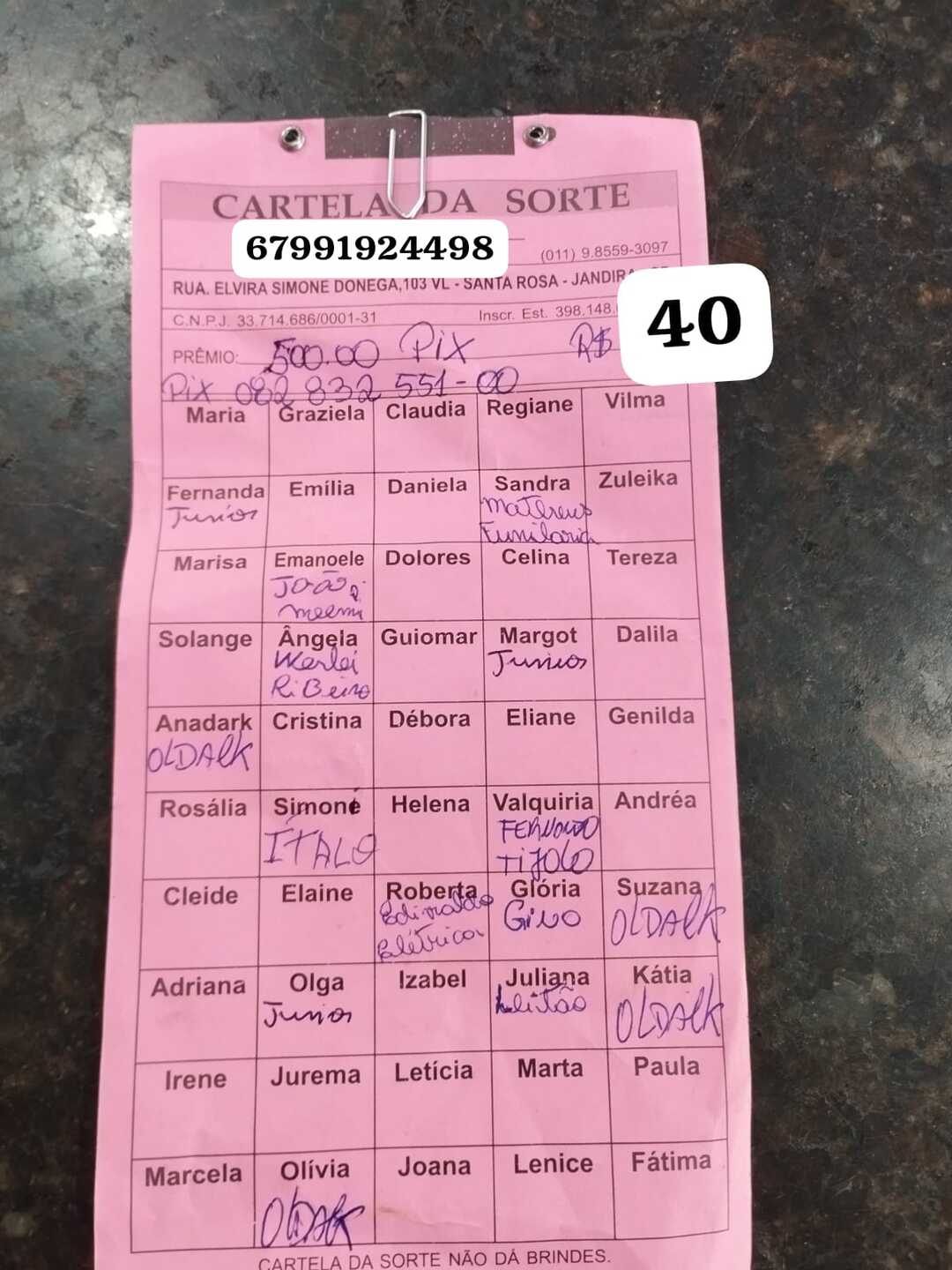 Para arrecadar o valor necessário, Zaqueu criou uma rifa solidária, cujo prêmio será de R$ 500. Cada número da rifa será vendido por R$ 40, e o sorteio será realizado assim que todos os números forem vendidos.
