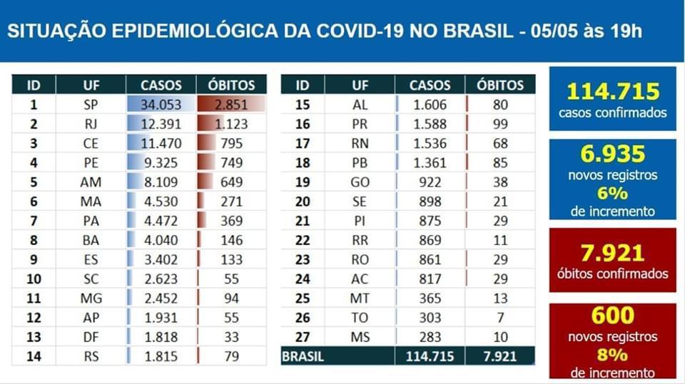 A divulgação do ranking ocorre em um momento que o Brasil bateu recorde no registro de mortes, sendo 600 em 24 horas, com 114.715 casos confirmados.