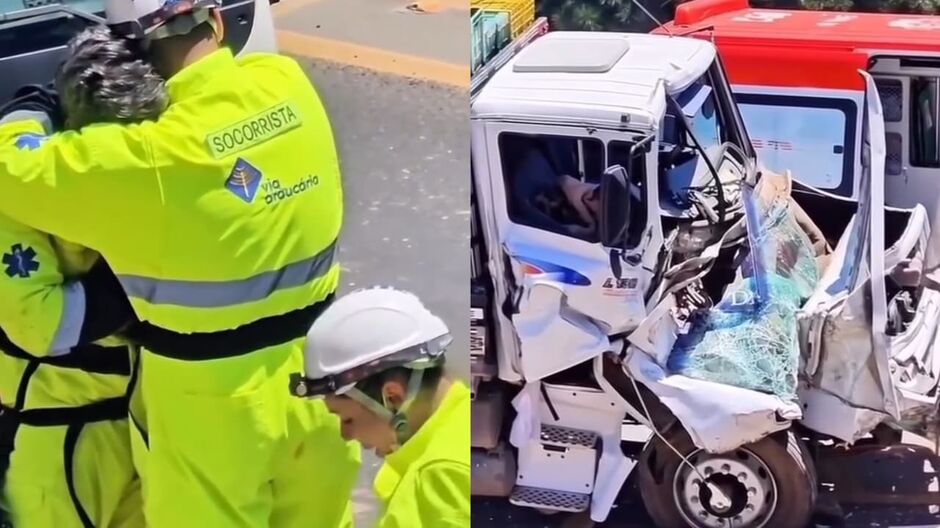 Segundo o Corpo de Bombeiros, o menino estava na cabine de um dos caminhões ao lado do pai, que saiu ileso fisicamente, mas ficou profundamente abalado.