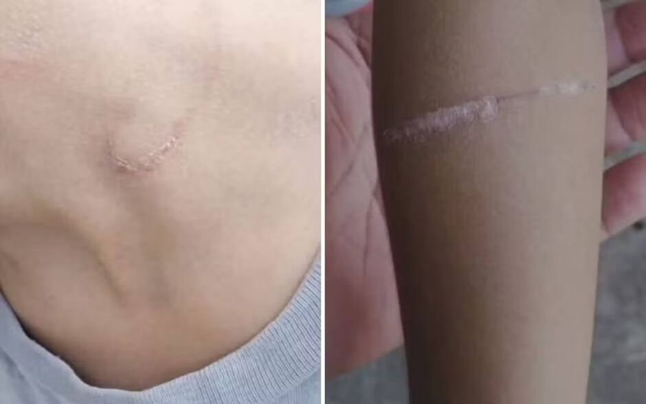 O caso ocorreu nessa terça-feira (2/9), na capital goiana. Nas imagens, uma das crianças mostra como ficaram os machucados, alguns cicatrizados.
