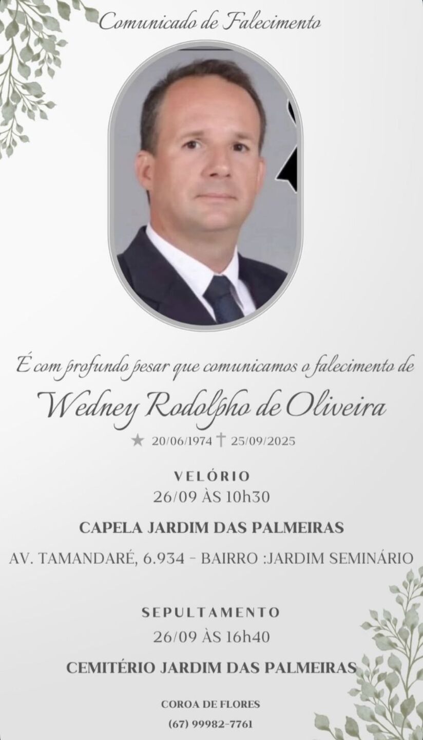A morte do perito criminal Wedney Rodolpho de Oliveira, nesta quinta-feira (25) comoveu Campo Grande. A Polícia Científica de Mato Grosso do Sul comunicou o falecimento e prestou homenagem ao servidor que atuou com dedicação durante 23 anos de carreira.