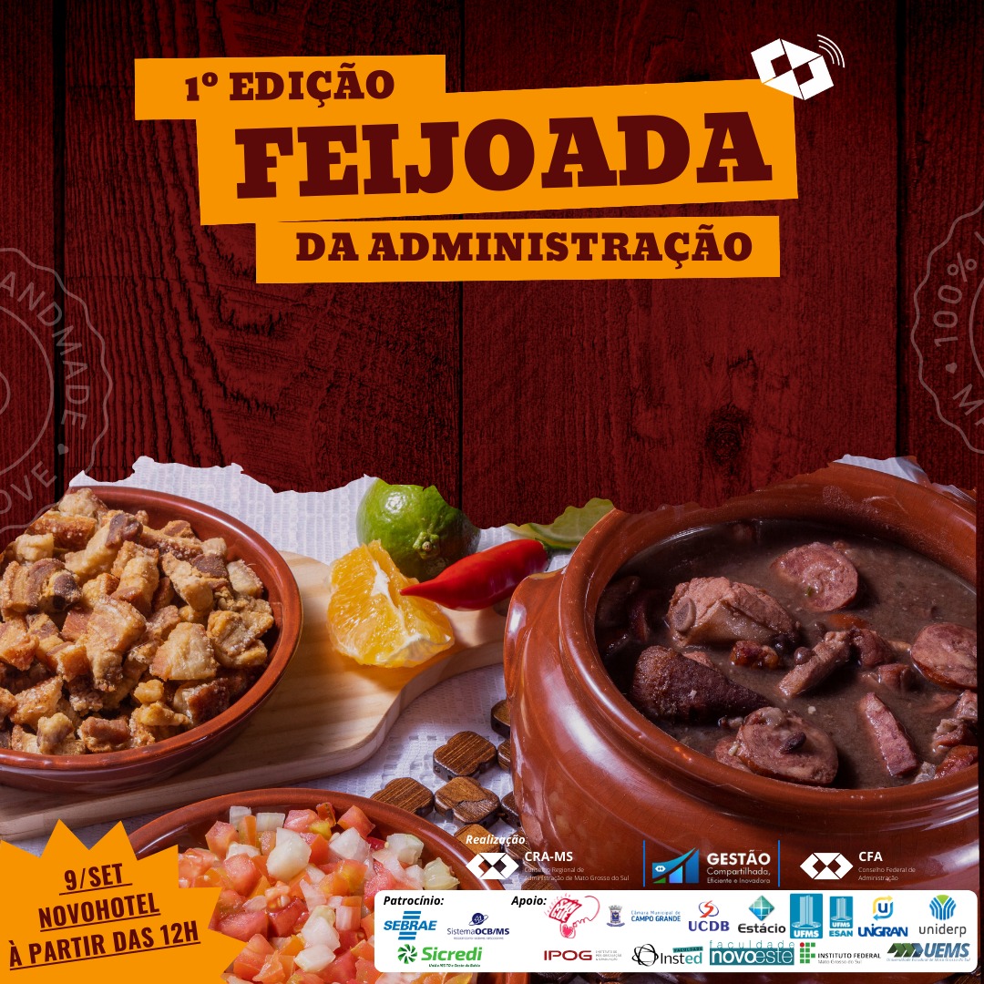 No mesmo dia haverá a 1ªFeijoada da Administração realizada pela diretoria do CRA-MS. A ideia é acrescentar um evento leve e de descontração nas comemorações no mês do administrador.