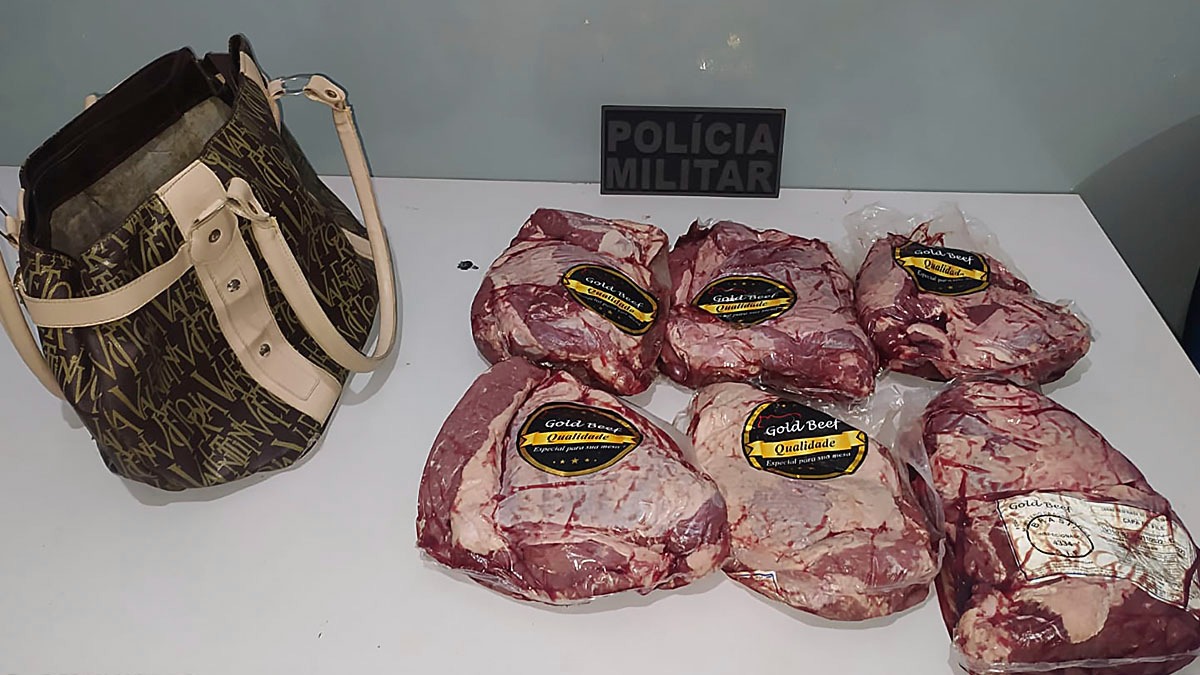 A suspeita saiu do mercado com as peças de carne sem pagar.