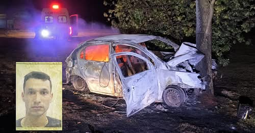 Com o impacto da batida contra a árvore, os dois ficaram presos e desacordados dentro do carro, que logo em seguida começou a pegar fogo.