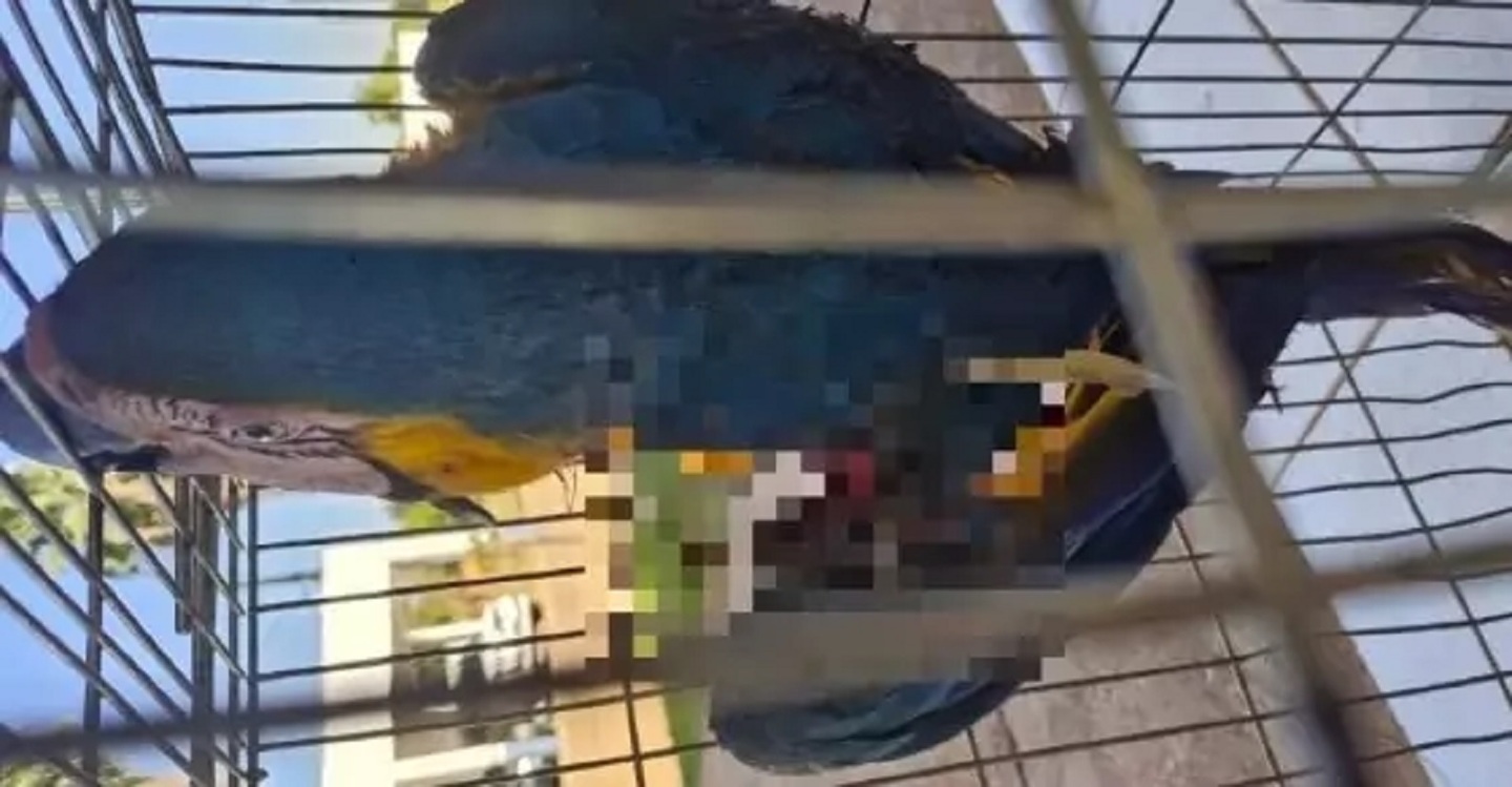 Uma arara-canindé sofreu um grave ferimento após ter a asa cortada por uma linha de pipa com cerol, na região da Vila Verde, na cidade de Três Lagoas — distante 323 quilômetros de Campo Grande.