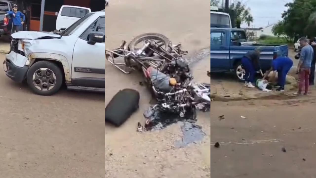 Um grave acidente foi registrado no bairro Marambaia, em Ponta Porã, envolvendo uma motocicleta e um carro nesta quarta-feira (8). Com o impacto, a moto ficou totalmente destruída e a condutora sofreu ferimentos.