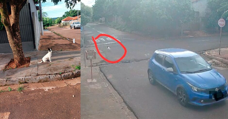 Câmeras de segurança capturaram o momento em que um motorista abandona uma cachorra na esquina das ruas São João e São José, na Vila Pernambuco, no município de Cassilândia, a 412 quilômetros de Campo Grande.