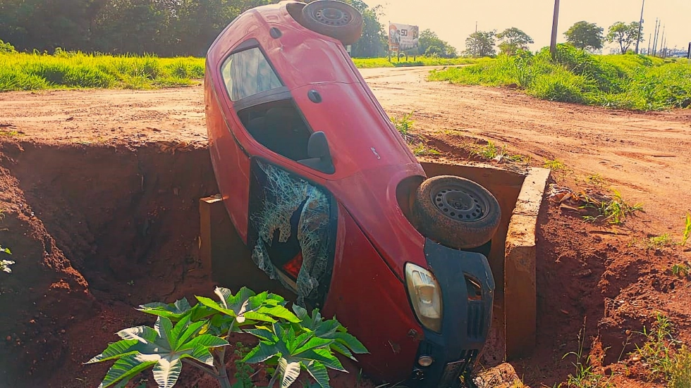 Um veículo modelo GM/Celta de cor vermelha foi encontrado numa canaleta de águas pluviais, em um acidente que teria ocorrido entre a noite de domingo (2) e a madrugada desta segunda-feira (3), na rodovia MS-134, nas proximidades da entrada do Jardim Tropical, em Nova Andradina, 297 km de Campo Grande.