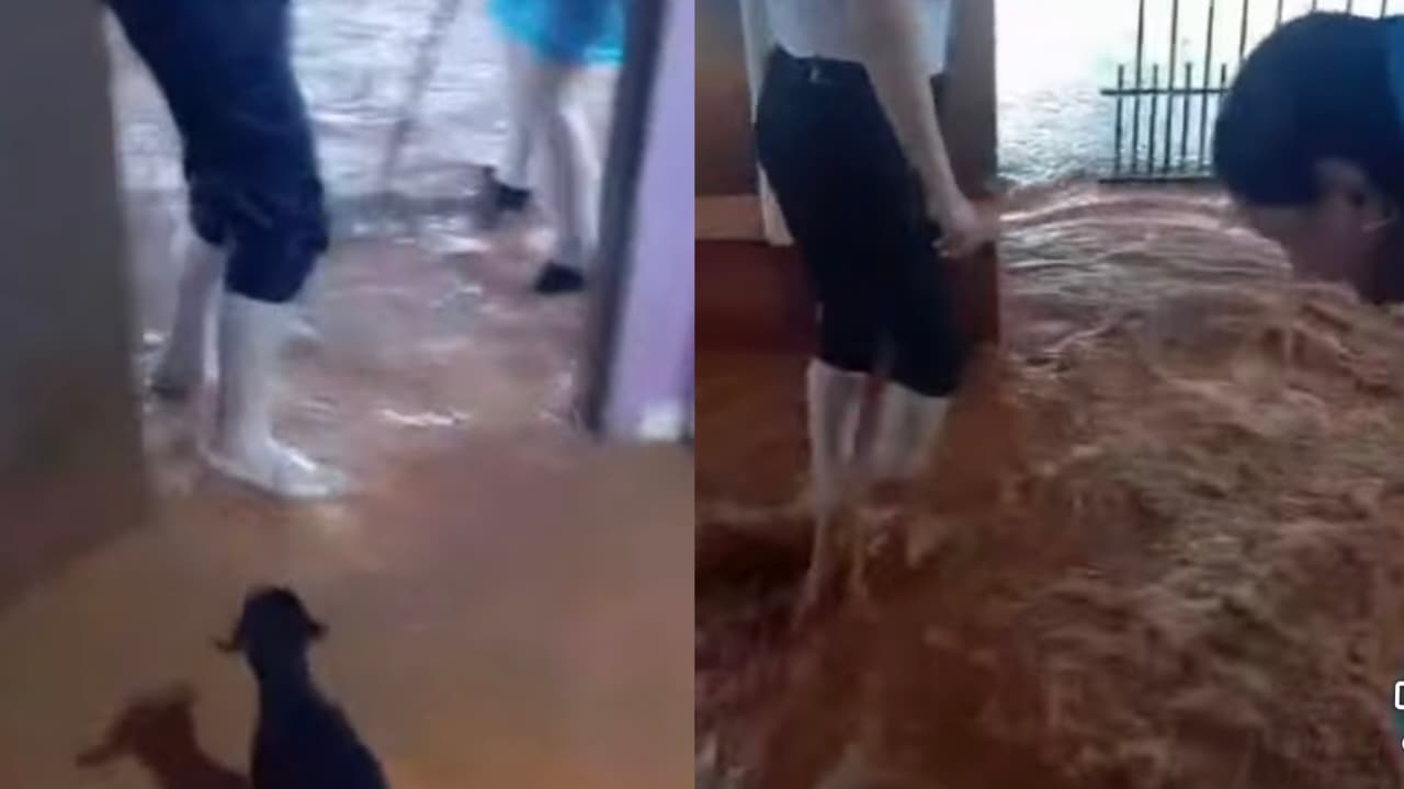 Em vídeo publicado nas redes sociais, uma moradora mostra a situação que a sua residência ficou após o temporal. Com lama, água e a tentativa de salvar alguns móveis, ela cobra o poder público.