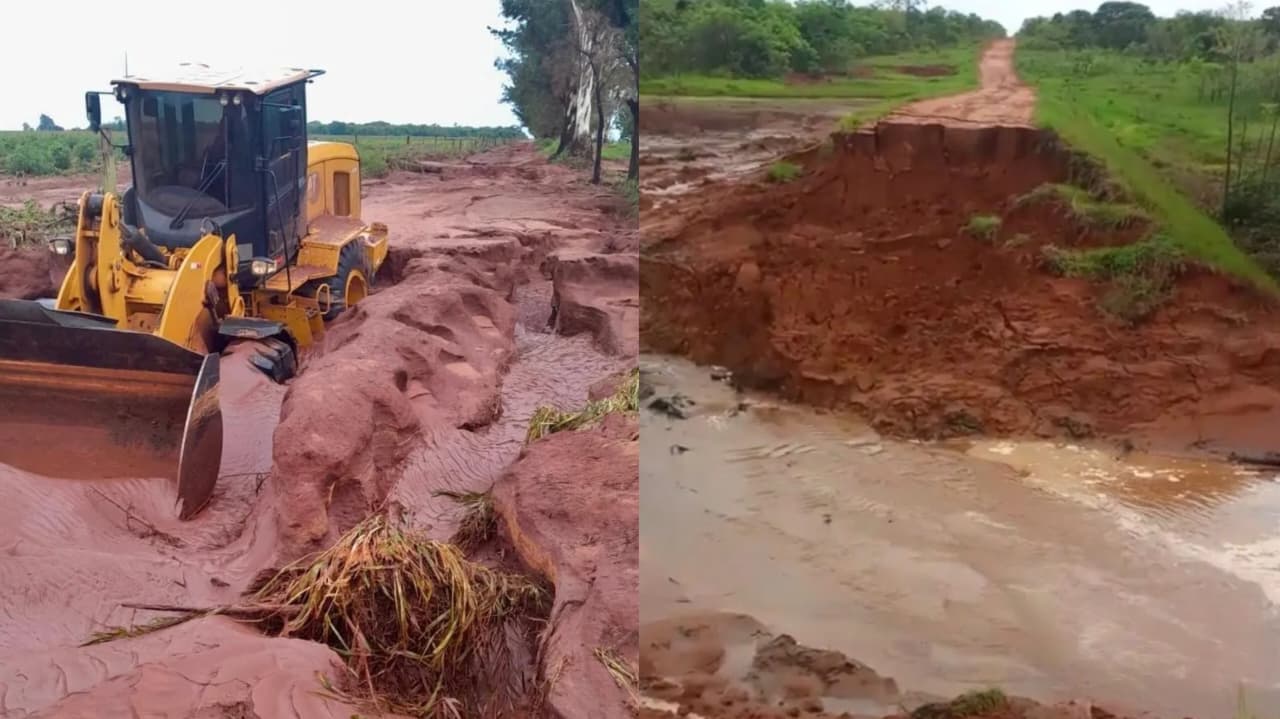Vídeos e fotos feitos no local mostram a dimensão dos danos: uma cratera abriu-se no ponto onde antes passavam veículos, interrompendo totalmente o tráfego. A força da água expôs o solo, arrastou vegetação e deixou um rastro de lama e erosão por toda a área.
