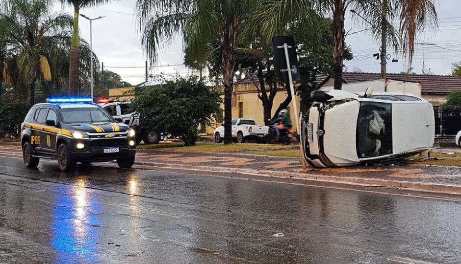 Um acidente envolvendo dois veículos, um Chevrolet Prisma e um VW Fox, terminou em capotamento na tarde desta segunda-feira (4), na Avenida Dorvalino dos Santos, em Sidrolândia – a 70 quilômetros de Campo Grande.