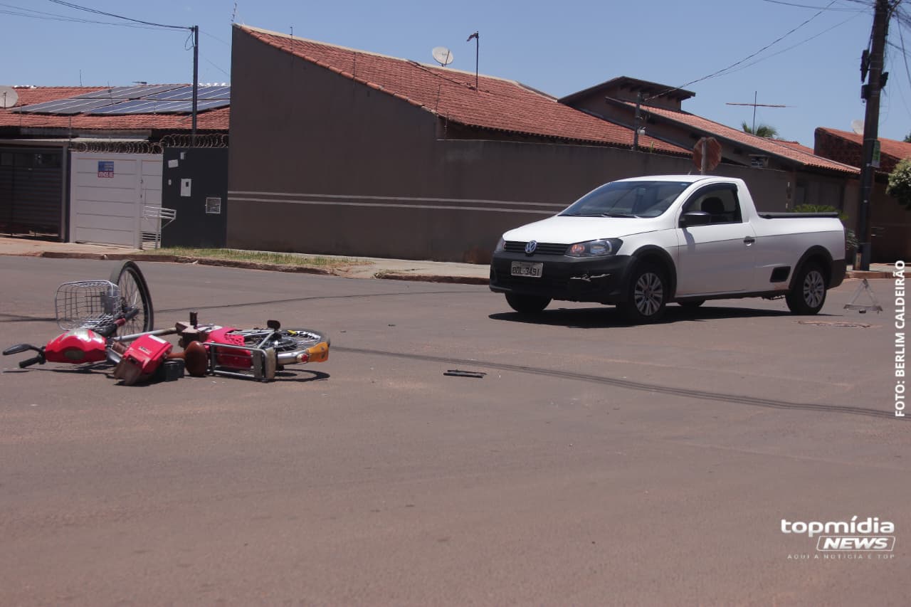 Um idoso de 62 anos ficou ferido em um acidente envolvendo sua bicicleta elétrica e uma caminhonete Volkswagen Savero na manhã desta quarta-feira (26) no bairro Santa Emília, em Campo Grande.