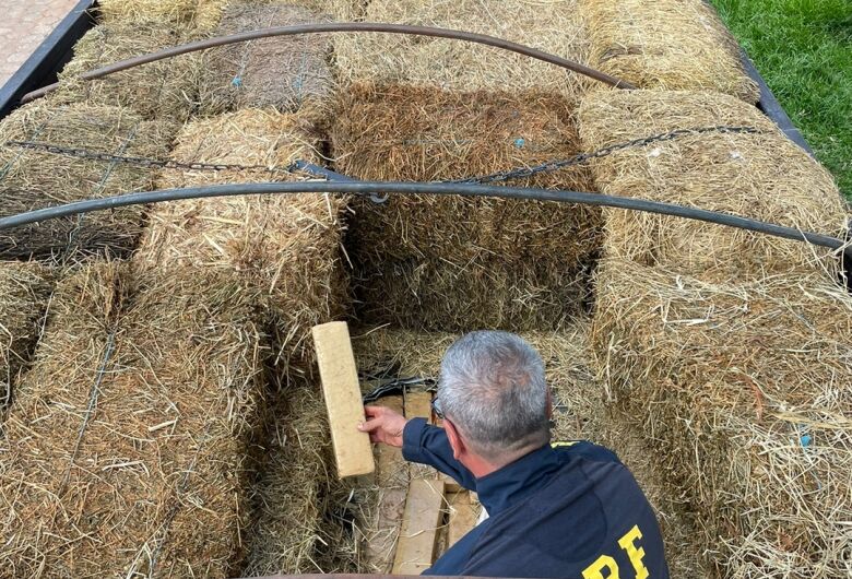 Durante checagem ficou constatado que havia uma camada de feno apenas para ocultar a carga ilícita.