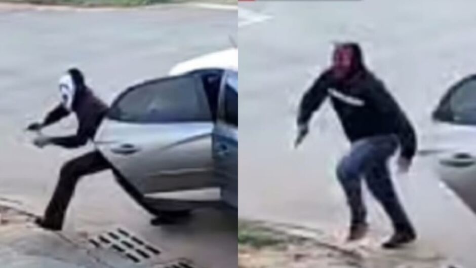 As imagens mostram o momento em que a vítima chega ao estabelecimento em uma motocicleta, estaciona e se dirige ao comércio. Logo em seguida, um veículo com três homens a bordo chega ao local. Armados e encapuzados, eles descem, se aproximam da vítima, efetuam vários disparos e fogem.