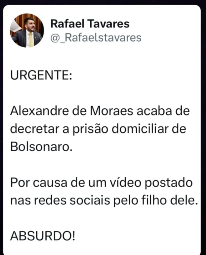 Um dos primeiros a se manifestar foi o vereador Rafael Tavares (PL), de Campo Grande, conhecido por seu alinhamento com pautas bolsonaristas. Por meio de sua conta no Instagram, Tavares repudiou a decisão do STF, classificando-a como um “absurdo”.