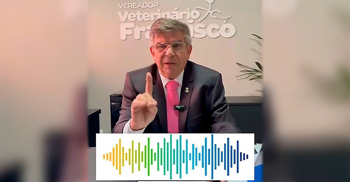 No trecho da gravação exposta, Francisco fala para um suposto grupo de profissionais da Medicina Veterinária sobre investida do Ministério Público para a gestão municipal promover atendimentos gratuitos a animais na cidade.