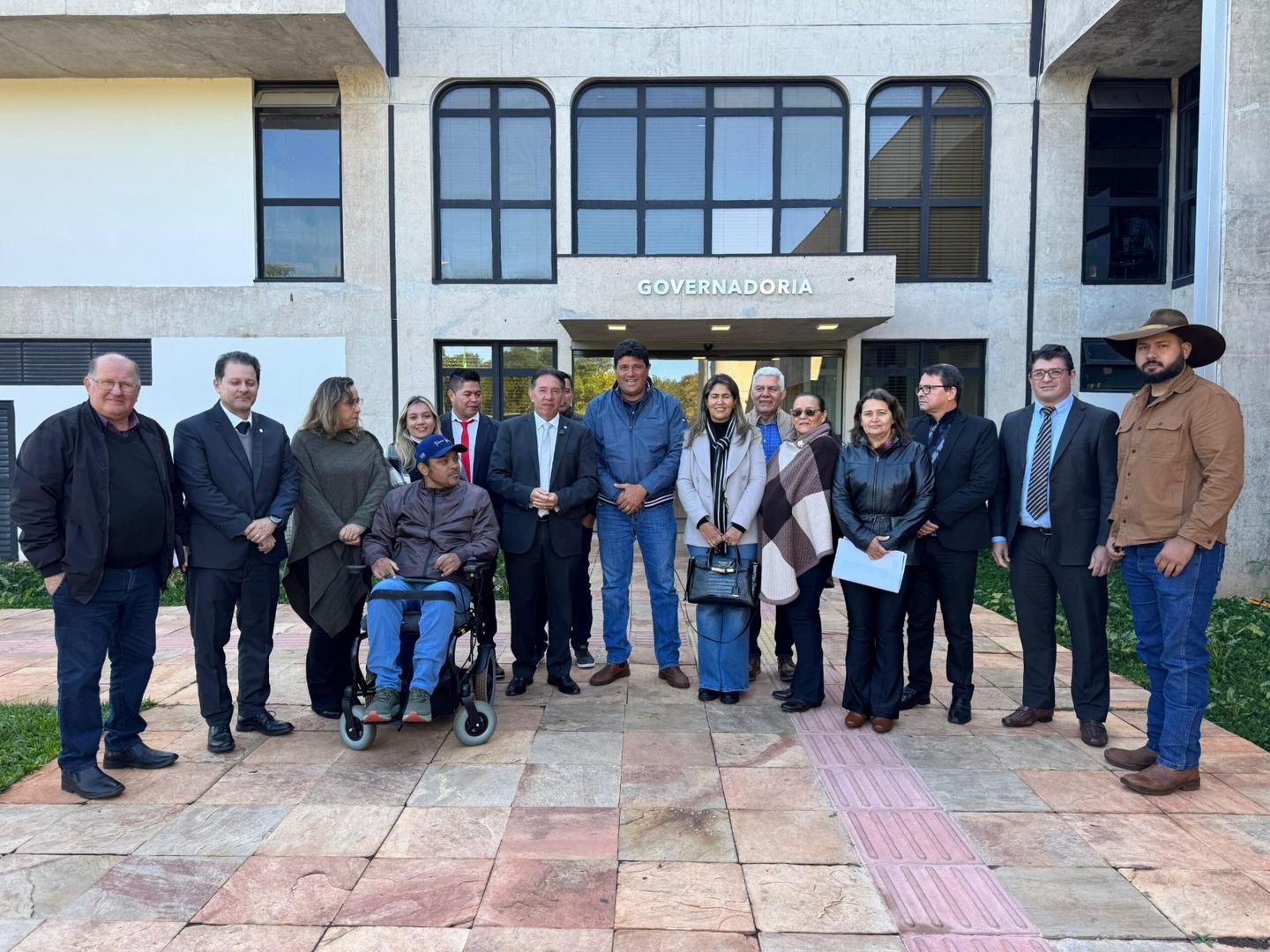 A reunião na governadoria com o governador Eduardo Riedel, na manhã de terça-feira (18), contou com a presença do prefeito Rodrigo Basso, vereadores, secretários municipais, a senadora Tereza Cristina, deputados estaduais e federais.
