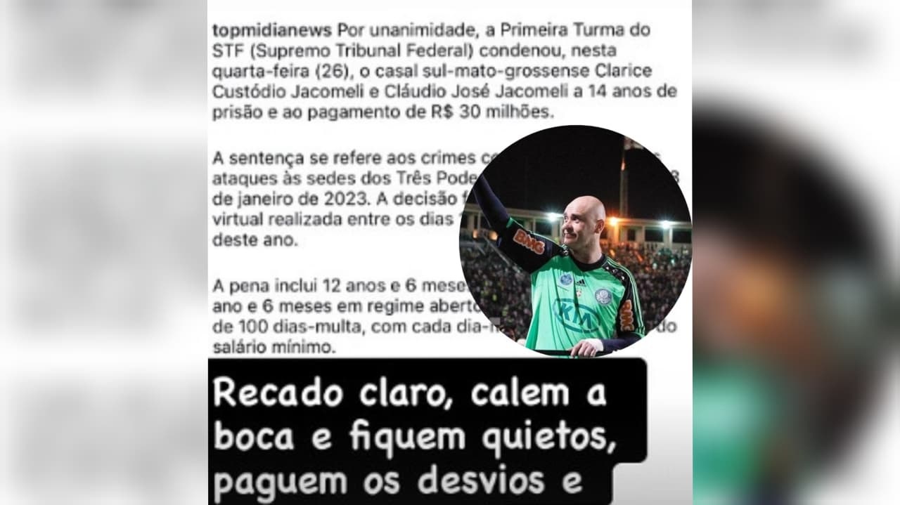 ''Recado claro, calem a boca e fiquem quietos, paguem os desvios [de dinheiro] e seus impostos, entenderam? Boa sorte'', analisou o goleiro ídolo do Palmeiras.