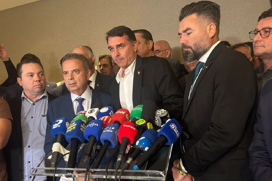 “Nosso objetivo único é aprovar do PL da Anistia na Câmara dos Deputados e, em tendo êxito, no Senado Federal ”, disse Flávio após reunião com parlamentares do PL da sede do partido, em Brasília.