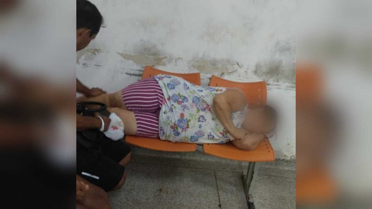 De acordo com relatos enviados ao TopMídiaNews, a paciente passou por uma cirurgia recentemente e estaria aguardando atendimento nos bancos da unidade com fortes dores.