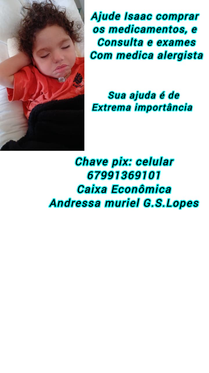 "Preciso pagar a consulta e os exames que a médica solicitar. Não tenho condições, por isso peço ajuda de qualquer valor pelo Pix (67) 99136-9101. Sempre presto contas em minhas redes sociais", afirma.